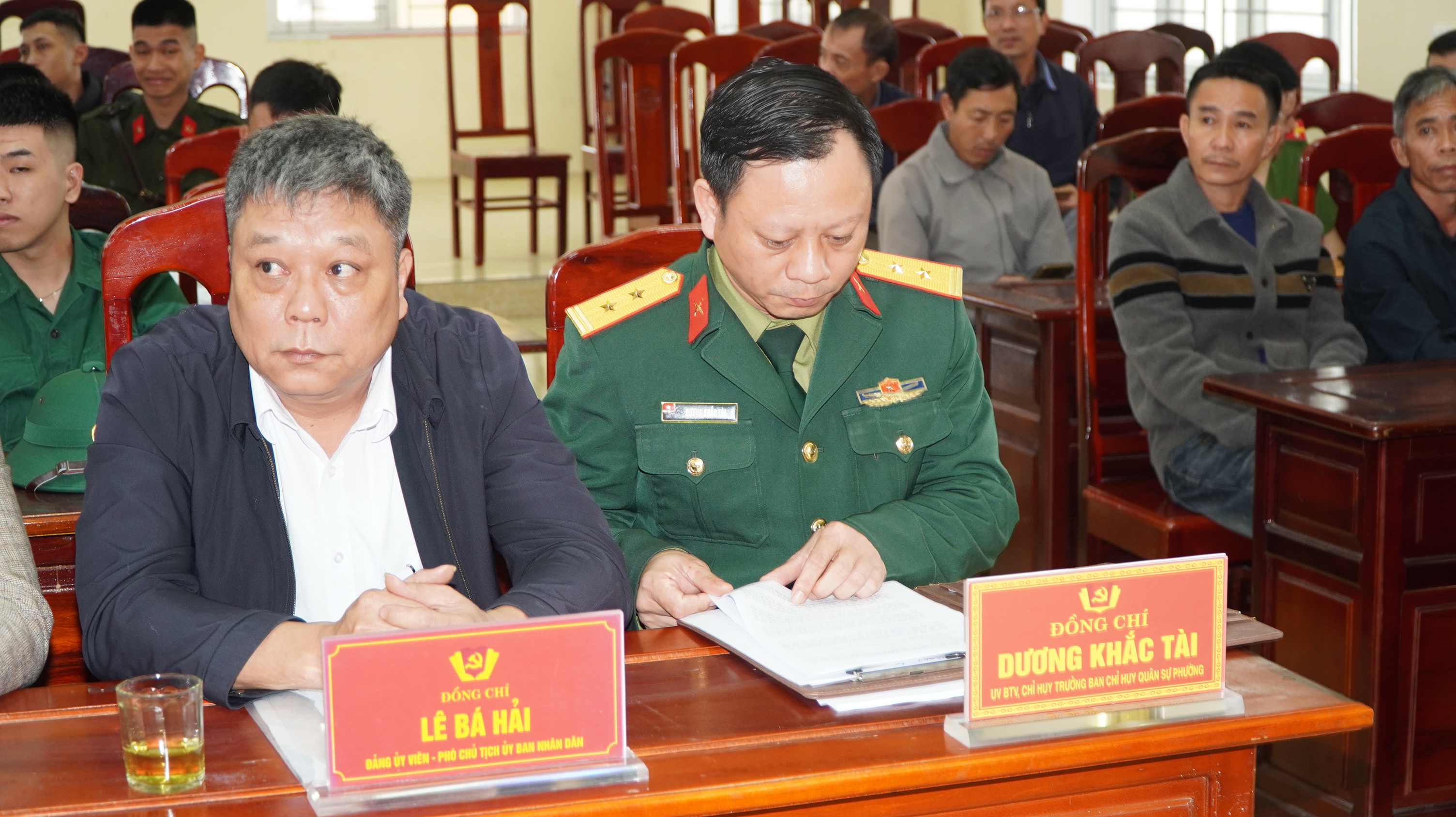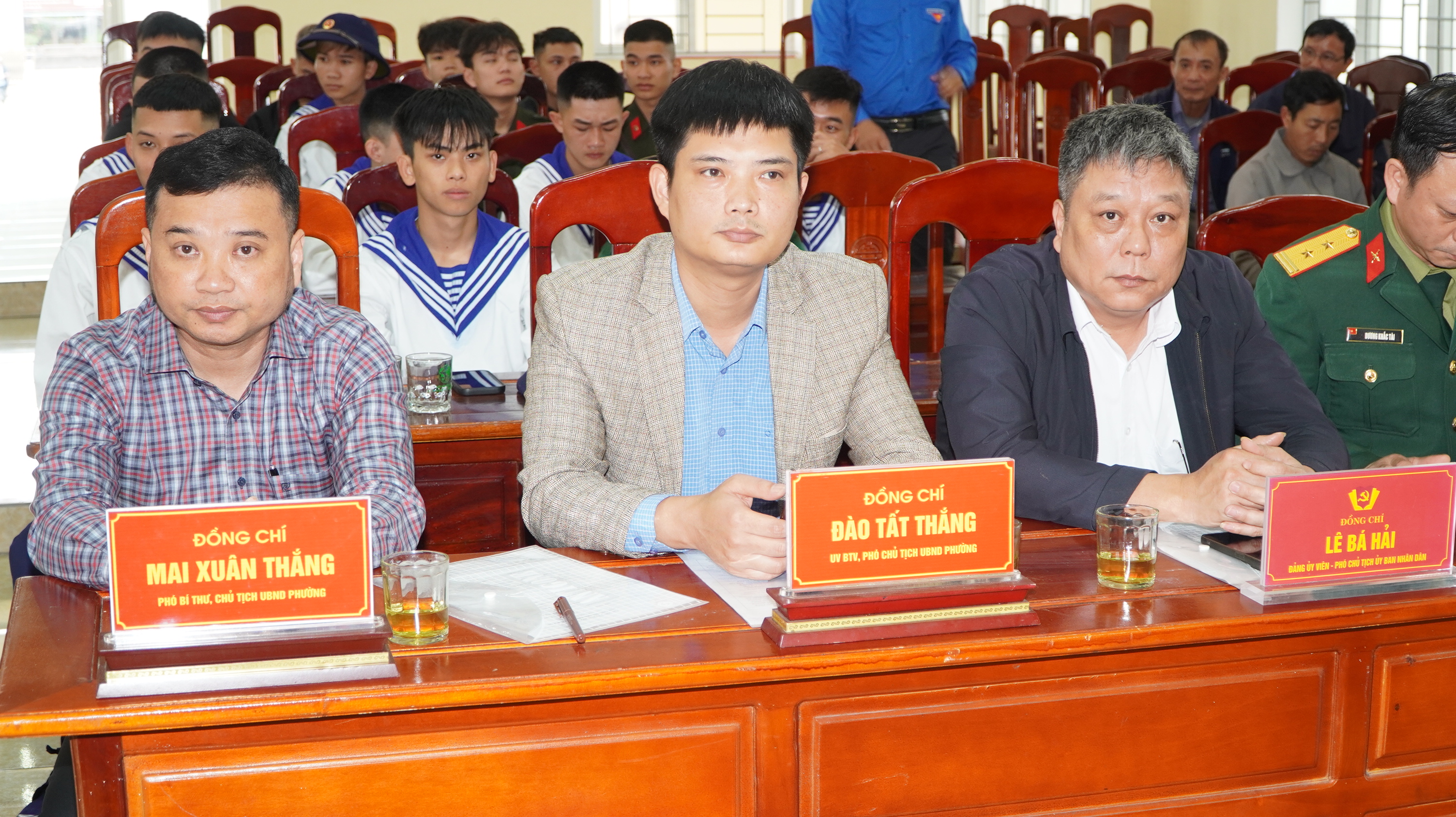 Phát biểu chỉ đạo tại buổi lễ, đồng chí Mai Xuân Thắng, Phó Bí thư Đảng ủy, Chủ tịch UBND, Chủ tịch Hội đồng Nghĩa vụ quân sự phường khẳng định địa phương đã thực hiện nghiêm túc, chặt chẽ các bước tuyển chọn; đồng thời tin tưởng các thanh niên sẽ phát huy truyền thống quê hương, chấp hành nghiêm kỷ luật, tích cực học tập, rèn luyện, hoàn thành tốt nhiệm vụ được giao. Địa phương sẽ tiếp tục quan tâm thực hiện tốt chính sách hậu phương quân đội.