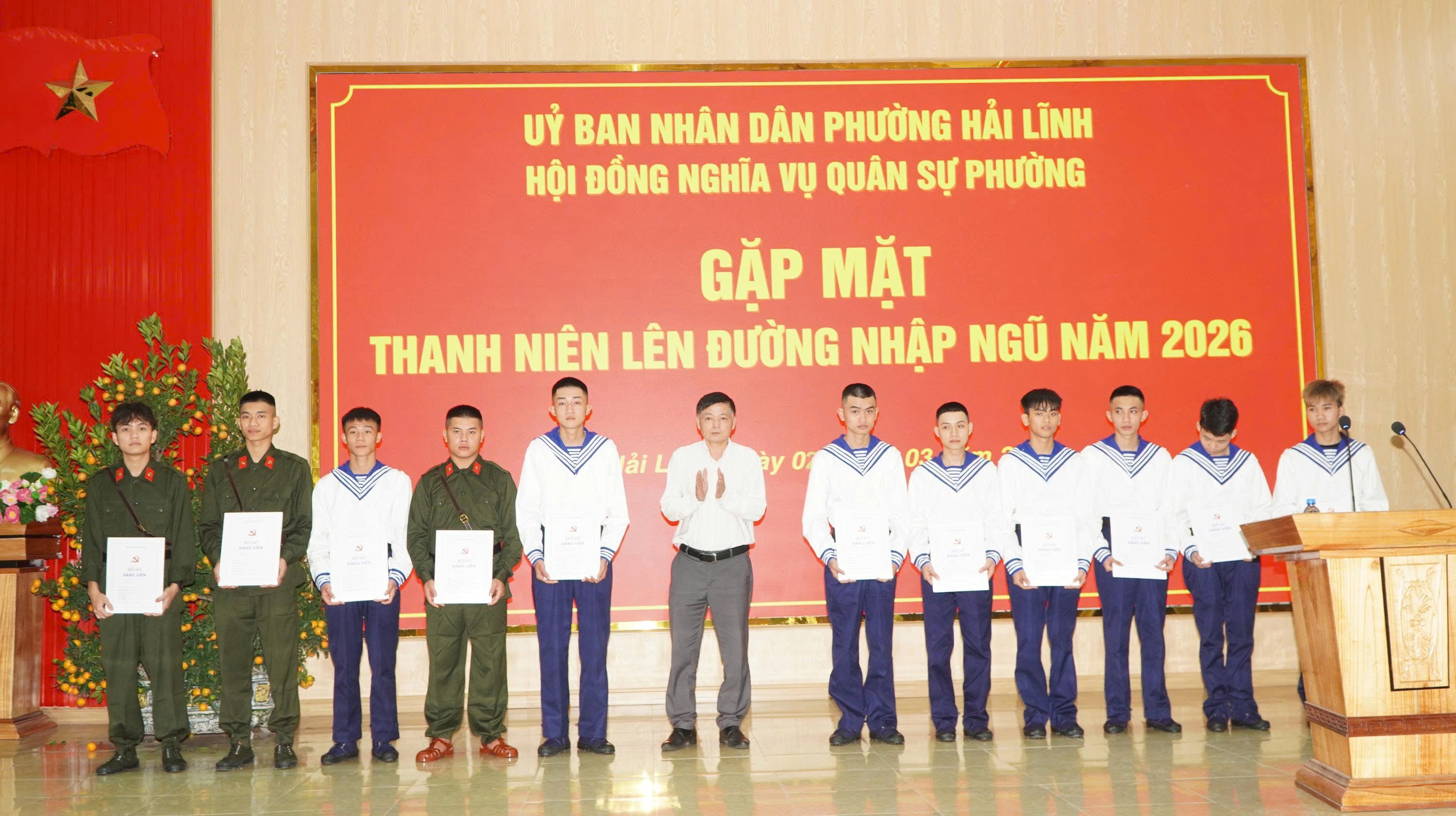 Chiều ngày 02/3, UBND phường Hải Lĩnh phối hợp với Hội đồng Nghĩa vụ quân sự phường tổ chức gặp mặt thanh niên chuẩn bị lên đường nhập ngũ năm 2026.