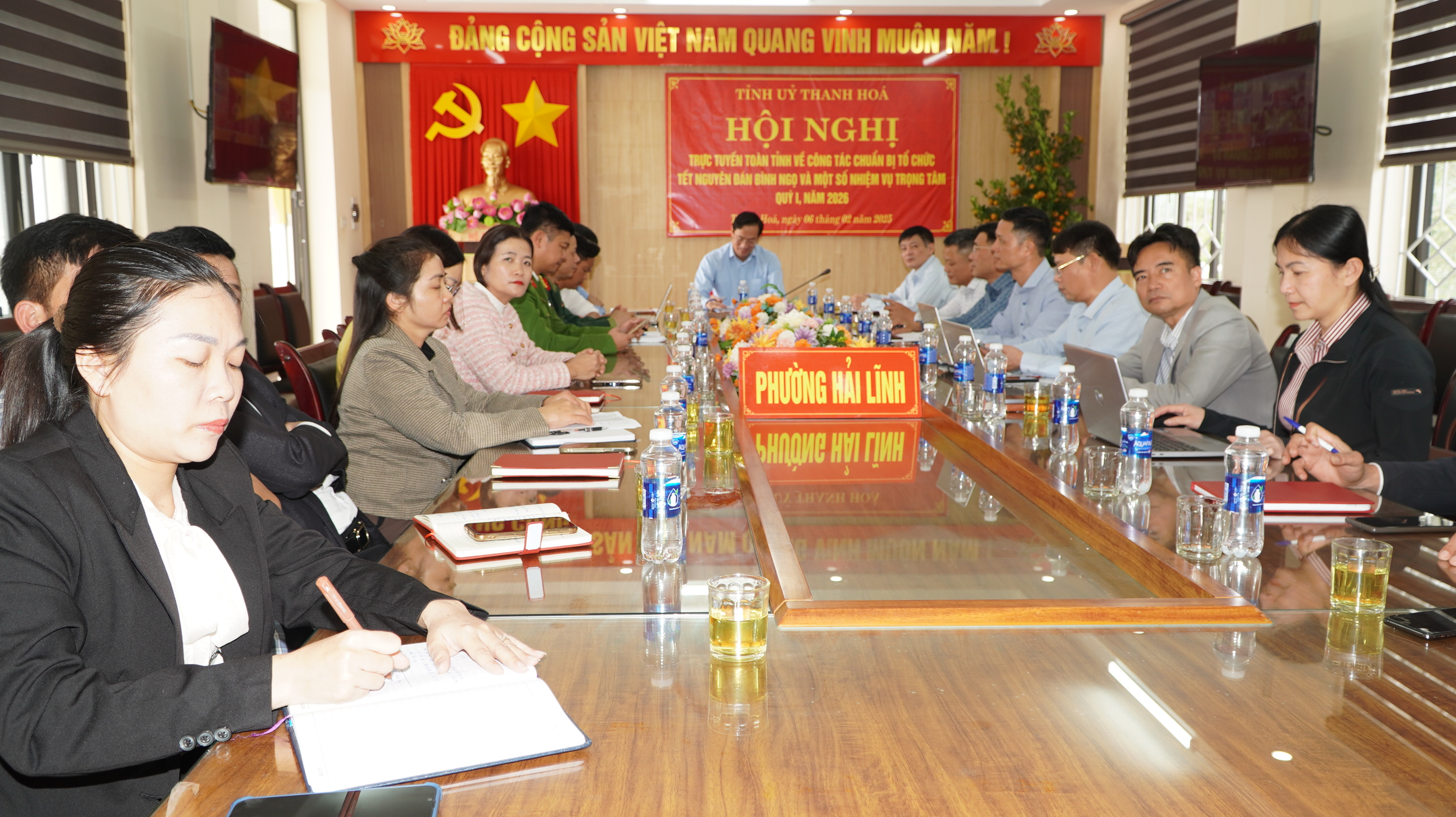 Chiều 6/2, Tỉnh ủy Thanh Hóa tổ chức Hội nghị trực tuyến toàn tỉnh đánh giá tình hình thực hiện nhiệm vụ tháng 1, triển khai nhiệm vụ tháng 2 và công tác chuẩn bị tổ chức Tết Nguyên đán Bính Ngọ năm 2026. Hội nghị được kết nối từ điểm cầu Tỉnh ủy đến 116 xã, phường trên địa bàn tỉnh.