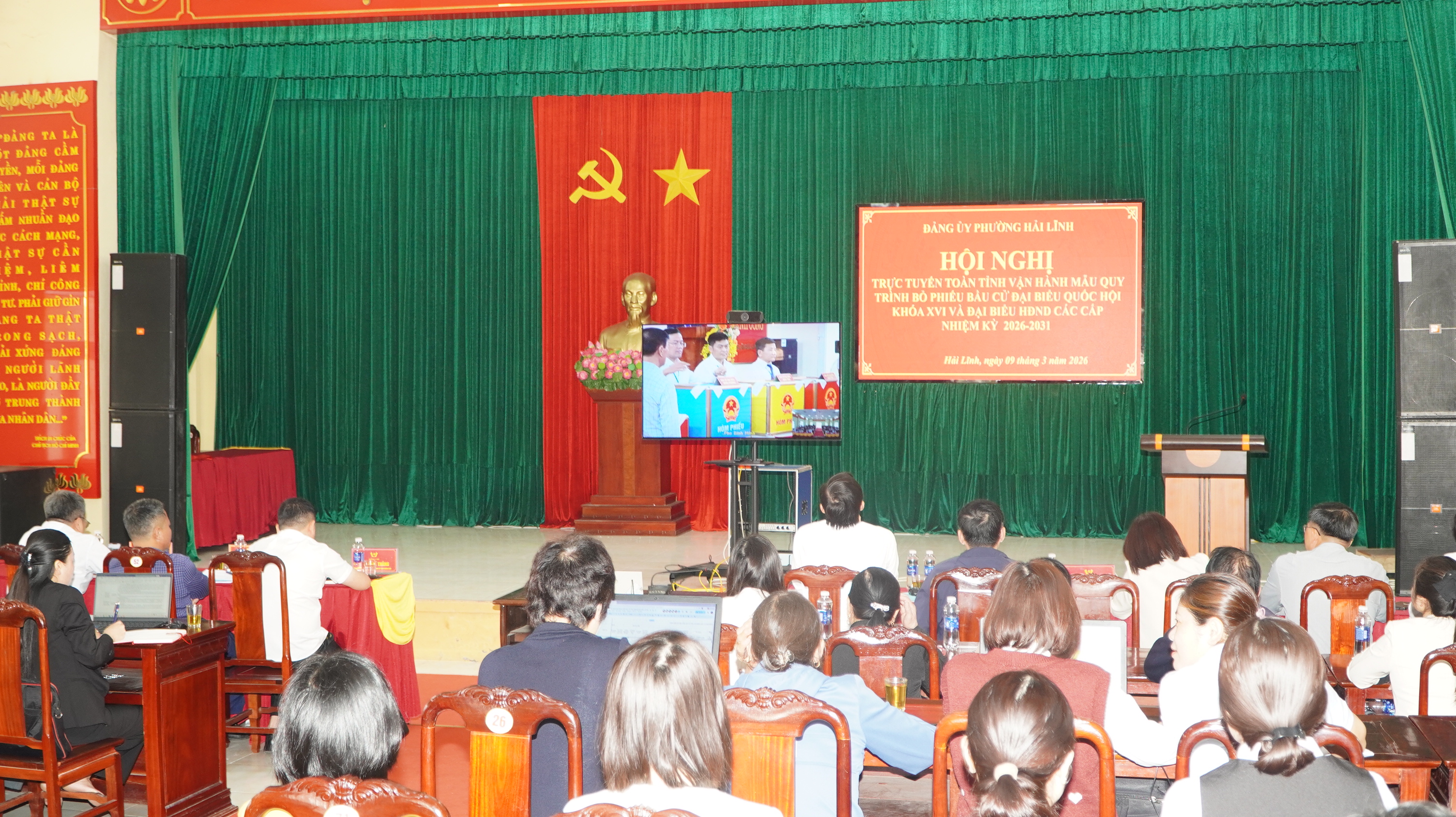 Dự hội nghị tại điểm cầu phường Hải Lĩnh có đồng chí Cao Thanh Tùng, Bí thư Đảng ủy, Chủ tịch HĐND phường; đồng chí Phạm Nhật Tân, Phó Bí thư Thường trực Đảng ủy phường; Đồng chí Mai Xuân Thắng, Phó Bí thư Đảng ủy, Chủ tịch UBND, Chủ tịch Ủy ban bầu cử phường; các đồng chí Ủy viên Ban Chấp hành Đảng bộ phường, các đồng chí thành viên Ủy ban bầu cử phường, Tổ trưởng, thư ký các tổ bầu cử; Bí thư chi bộ, Tổ trưởng tổ dân phố, Trưởng ban công tác Mặt trận các tổ dân phố trên địa bàn phường.