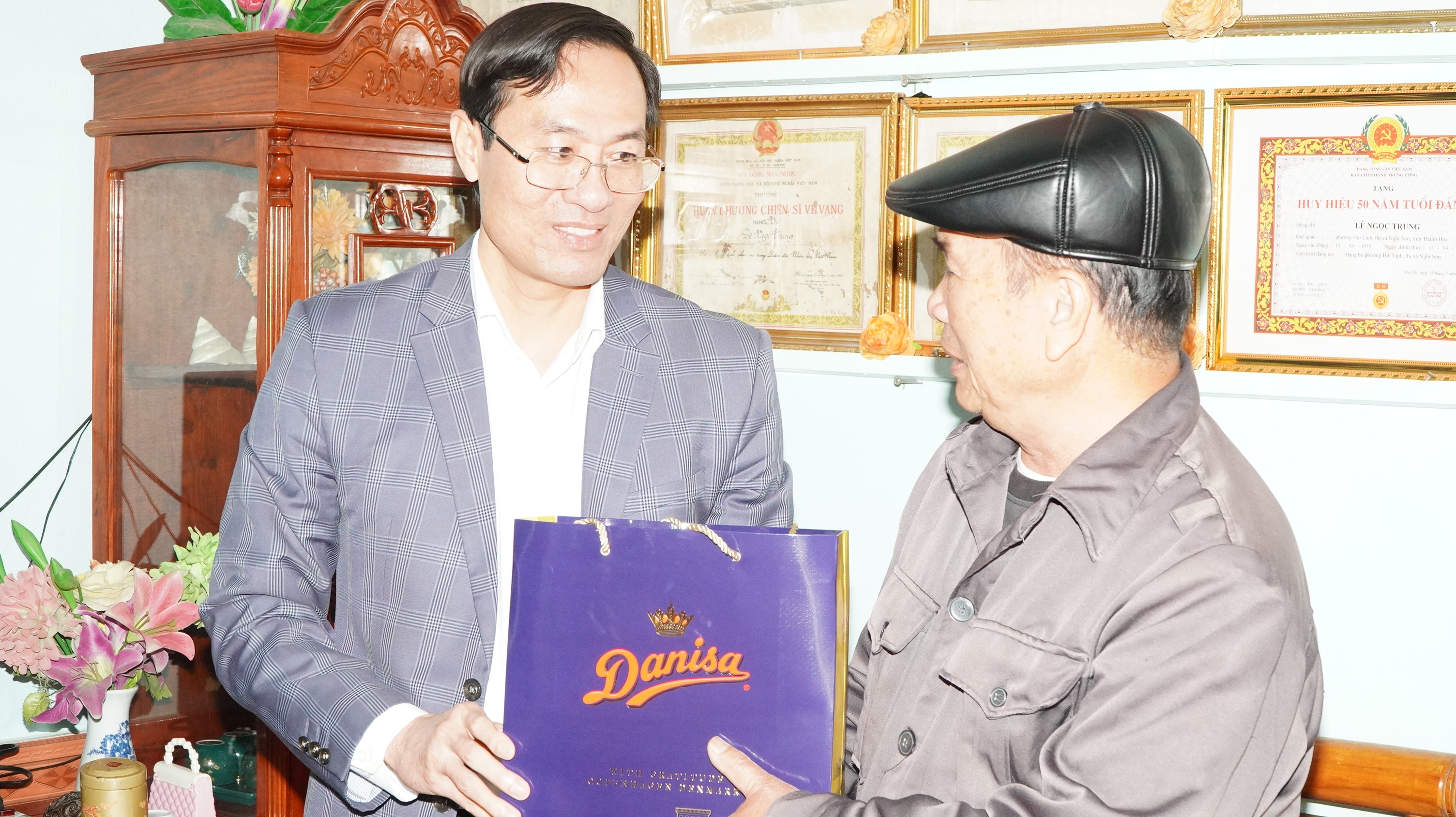 Đoàn công tác đã đến thăm, tặng quà đồng chí Mai Đức Hùng, nguyên Ủy viên Ban Thường vụ, Trưởng Ban Tổ chức Thị ủy Nghi Sơn; đồng chí Mai Công Vấn, nguyên Bí thư Đảng ủy phường Ninh Hải (cũ); đồng chí Hoàng Anh Môn, nguyên Bí thư Đảng ủy phường Ninh Hải (cũ); đồng chí Bùi Khắc Trung, nguyên Bí thư Đảng ủy phường Hải Lĩnh (cũ) và bà Lê Thị Lương, đảng viên 76 năm tuổi Đảng, trú tại Tổ dân phố Đức Thành.