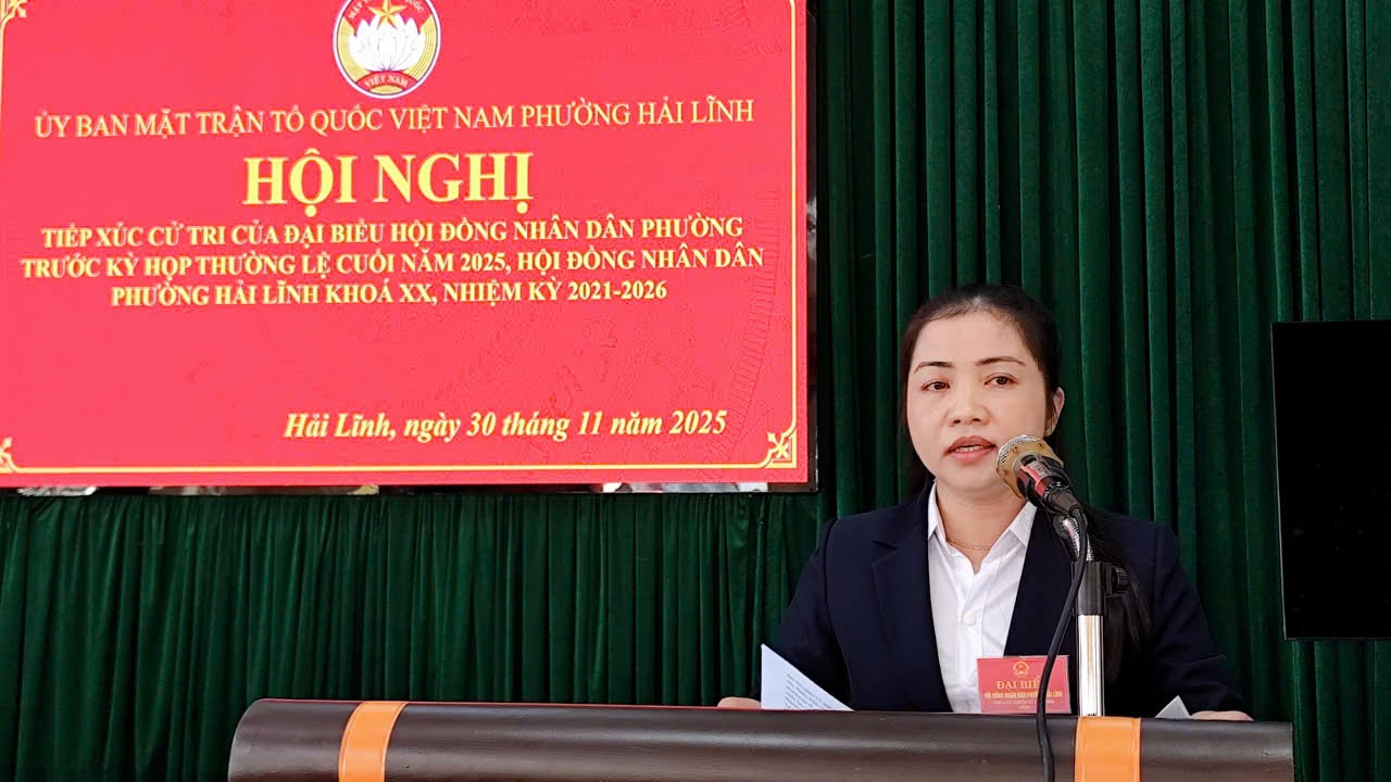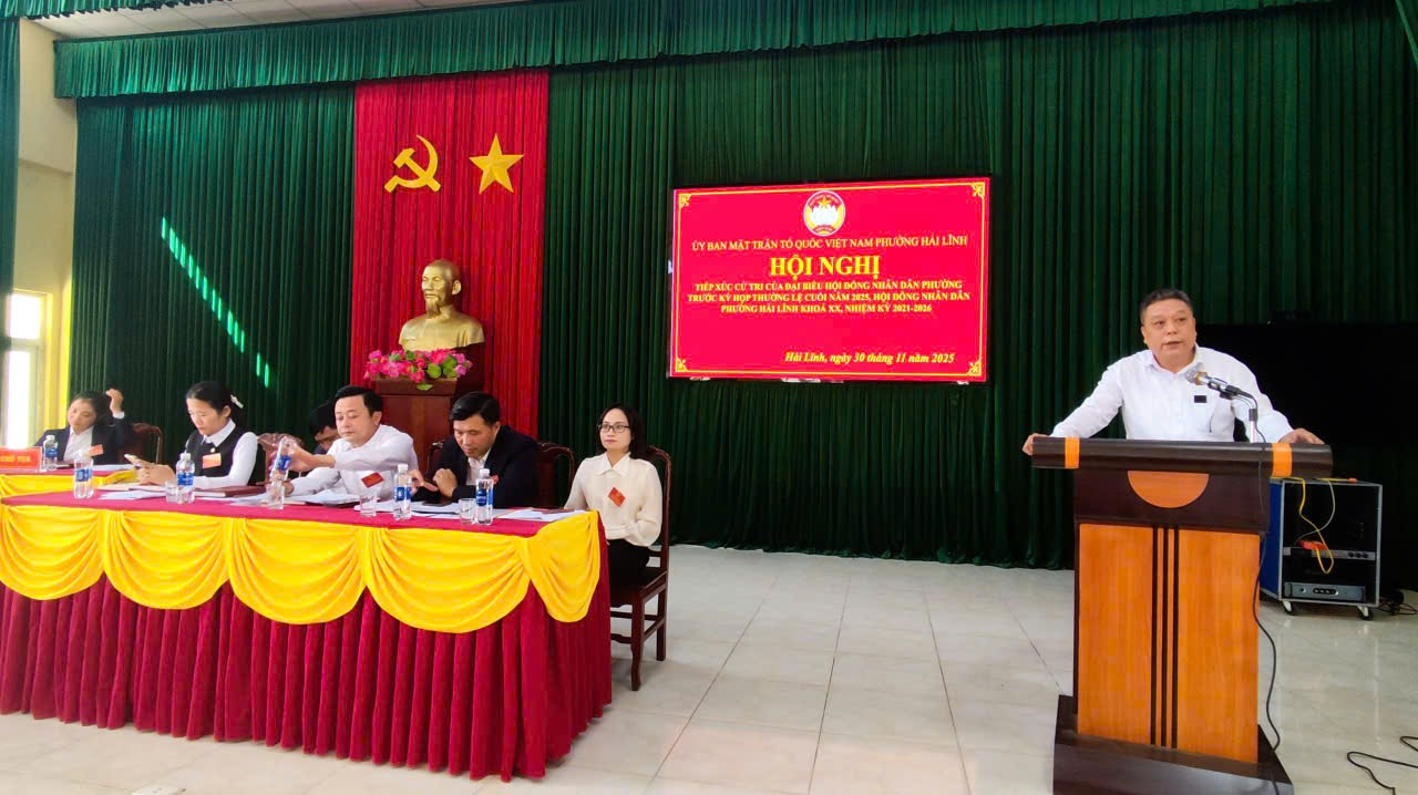 Sáng ngày 30/11, tại Hội trường cơ quan Đảng uỷ, MTTQ phường Hải Lĩnh, Tổ đại biểu HĐND phường, đơn vị bầu cử số 1, gồm các ông, bà: ông Lâm Ngọc Duy, Uỷ viên Ban Thường vụ, Chủ nhiệm Ủy ban Kiểm tra Đảng ủy phường; bà Nguyễn Thị Thu Trang, Ủy viên ban Thường Đảng ủy, Trưởng ban xây dựng Đảng; Ông Nguyễn Văn Bốn, Đảng ủy viên, Phó Chủ tịch MTTQ, Chủ tịch Hội Cựu chiến binh phường; bà Cao Thị Thuận, phó Trưởng ban Kinh tế - Ngân sách HĐND phường; ông Lê Văn Vân, Bí thư chi bộ Tổ dân phố Văn Sơn đã có buổi tiếp xúc cử tri các TDP: Sơn Hải, Đại Tiến, Quang Trung, Thống Nhất, Đức Thành, Văn Sơn).