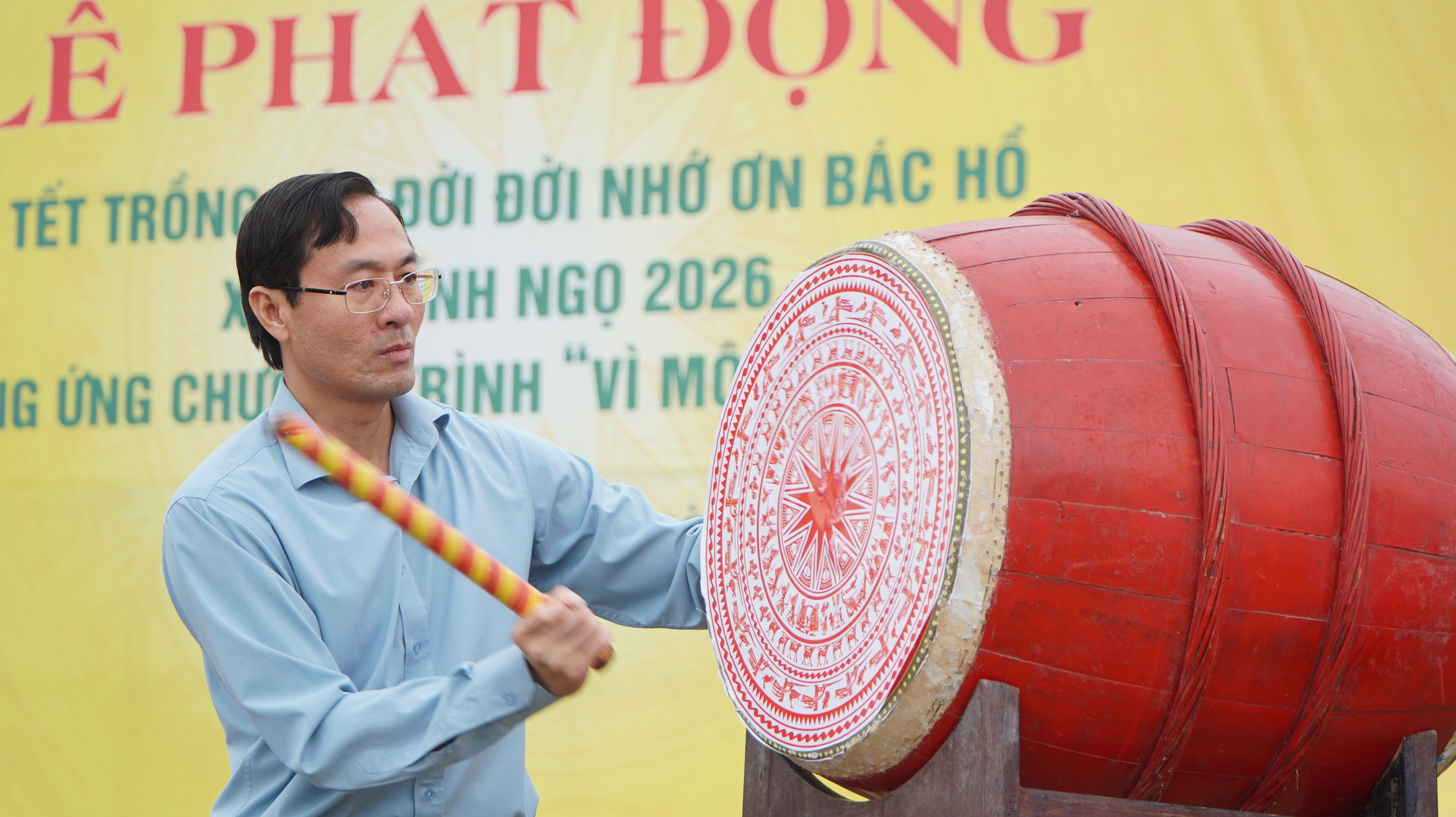 Tại buổi lễ, đồng chí Cao Thanh Tùng – Bí thư Đảng ủy, Chủ tịch HĐND phường đã đánh trống phát động “Tết trồng cây đời đời nhớ ơn Bác Hồ” Xuân Bính Ngọ năm 2026, thể hiện quyết tâm của cấp ủy, chính quyền và Nhân dân trong việc tích cực hưởng ứng phong trào trồng cây, bảo vệ môi trường.